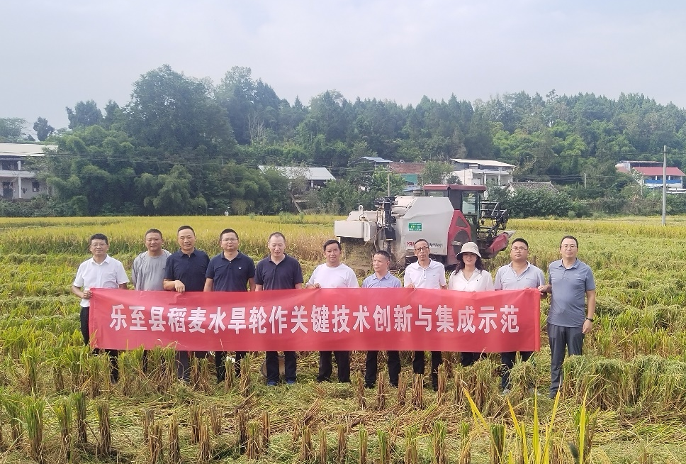 该项目由我校小麦研究所江千涛教授牵头,水稻研究所朱军副教授等组成的科技服务团具体实施。自2025年4月启动以来,团队深入乐至生产一线,系统开展试验选址、品种引育、技术集成与培训服务。在红仁粮油专业合作社基地,团队打造了2个百亩级“吨粮田”水旱轮作核心示范区,集中示范早熟高产小麦与水稻品种及配套技术。