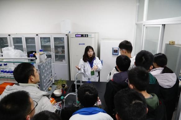 随后,同学们有序进入实验室观摩学习。讲解员们细致介绍了各实验室功能分区、仪器设备用途及水稻基因研究、幼苗培育等实验流程,使同学们近距离感受农业科研的严谨氛围与创新魅力。